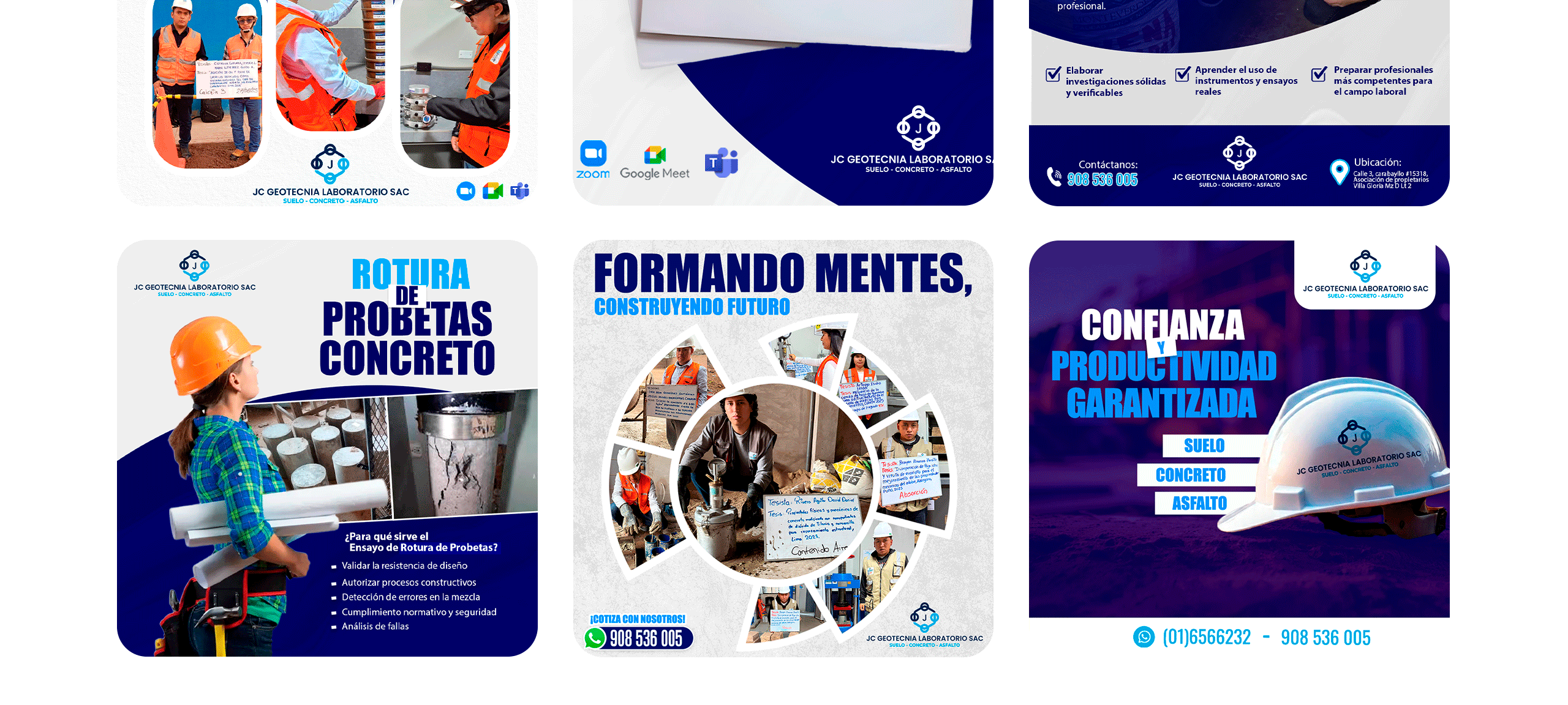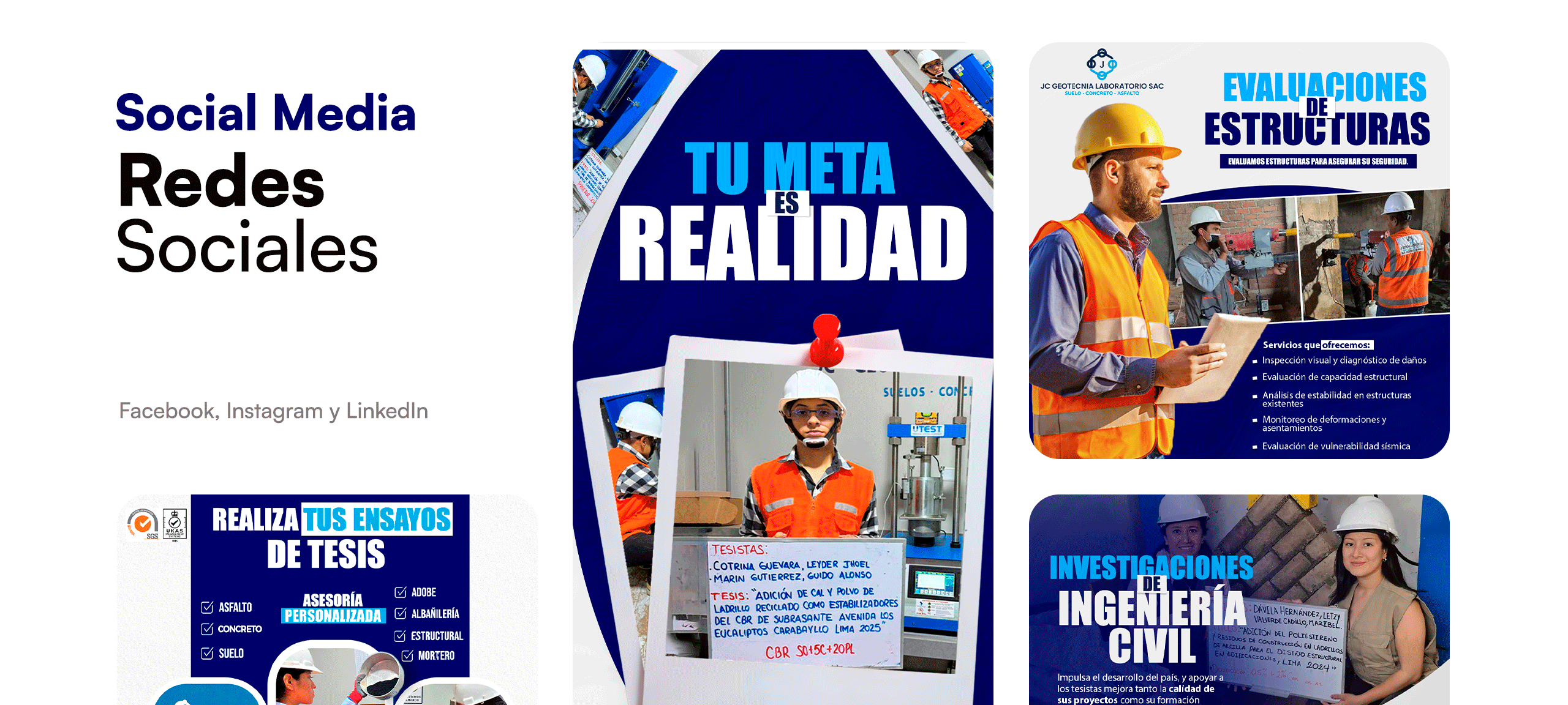 A partir de guiones breves, copys técnicos claros, videos cortos de procesos, recorridos, equipos y preparación de muestras, se desarrolló una línea visual sólida y coherente para JC Geotecnia. La dirección creativa se centró en: Tomas limpias y ordenadas. primeros planos de instrumentos y equipos, movimientos suaves y encuadres controlados y uso del audiovisual como prueba de precisión y método. El contenido fue pensado para redes sociales, web y campañas, priorizando claridad visual, lectura rápida y una narrativa enfocada en procesos bien ejecutados, equipos calibrados y control de calidad respaldado por ISO 9001.